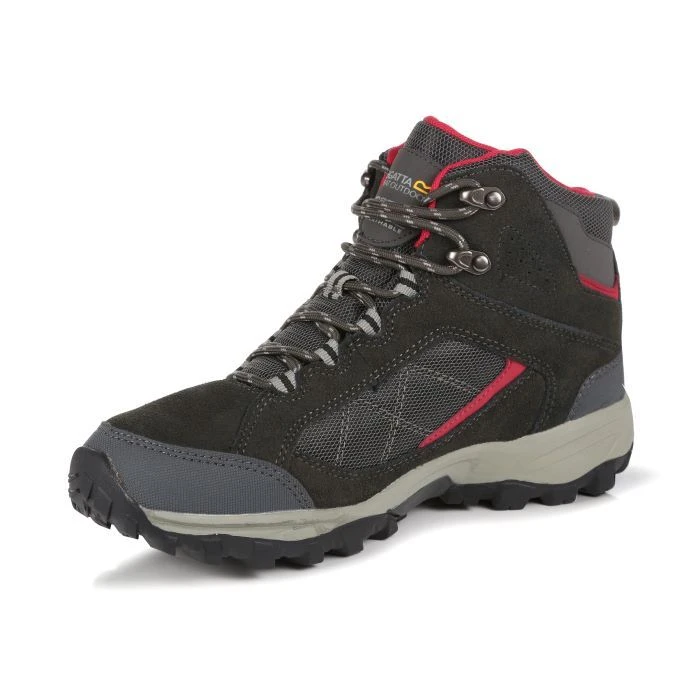 Suitable whatever the weather, across any terrain, the Clydebank Walking Boots from Regatta offer reliable and resilient wear and comfort. The mixture of suede and mesh uppers uses a water-shedding Hydropel technology to provide a waterproof and breathable Isotex membrane; to keep feet dry inside and out. Duopoint sole technology and mid-height cut help to protect and keep you from injury on uneven ground. Eva shock pads offer great comfort and help reduce fatigue on long distances and uneven terrain.