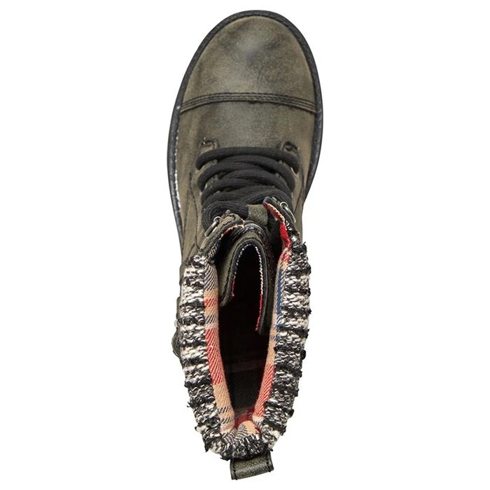Add a pinch of sass, style, and statement to your wardrobe with these faux leather Black Biker Boots by Rocket Dog which will add confidence to any outfit. The lovely 8 eyelets lace-up design is dressed in a black man-made upper which features a unique buckle detailing and a tartan knitted padded ankle cuff that keeps the ankle warm whilst looking incredible. Walk-in comfort thanks to the rubber grip sole and soft textile lining that supports you so you can make sure all eyes are on you and these stunning boots. Stand out from the crowd by pairing these bad boys with leggings, or jeans depending on the occasion!