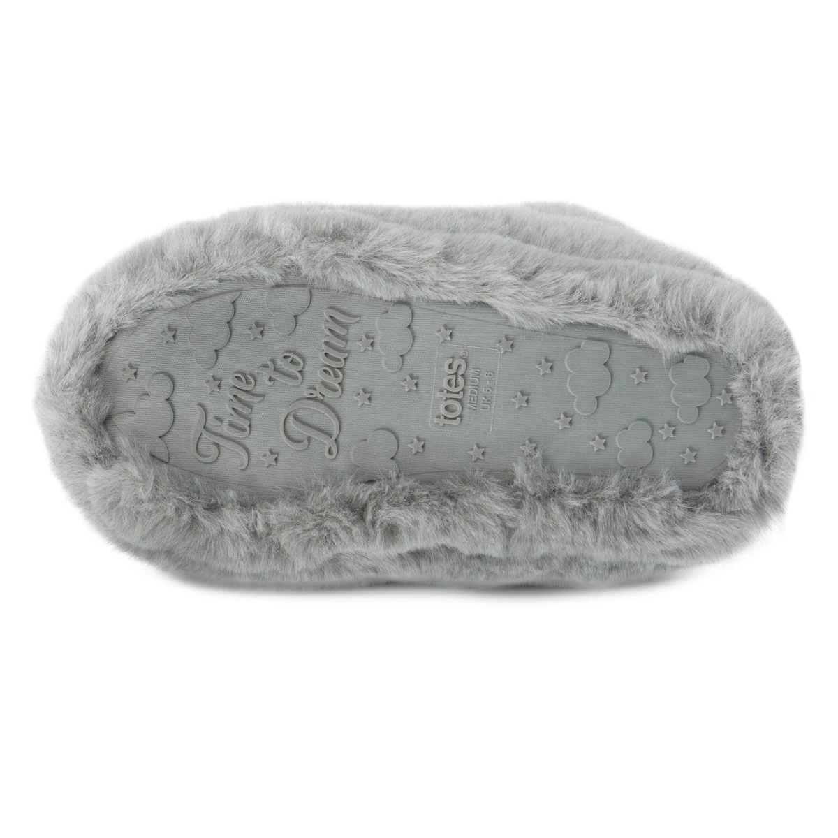 A luxurious and on trend pair of slippers from Totes. The Totes grey faux fur boot slippers offer ultimate comfort and warmth. Created with light and fluffy faux fur and a memory foam sole these slippers are great for popping on once you get home, keeping your feet warm and comfortable. Provided with a textile durable sole, these slippers have ultimate grip and ensure your feet won’t be weighed down. In a classic grey tone, these boots have ‘time to dream’ grips on the sole to ensure you won’t easily fall.